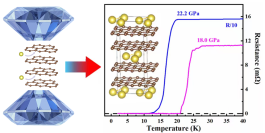 近日,环球360手机版登录高压与超硬材料全国重点实验室王洪波教授等人在新型碳基超导体研发方面获得新进展。自从发现超导电性以来,新型高温超导体的探索一直是凝聚态物理与材料科学领域的研究热点。低维度长期以来被认为是促进高温超导的重要因素。石墨插层化合物(graphite intercalation compounds, GICs)作为典型的二维材料体系,其独特的电子结构和可调控的层间相互作用,使其在探索高温超导机理与新型超导材料方面备受关注。然而,尽管经过多年的努力,石墨插层化合物中的超导转变温度最高纪录仍停留在2007年报道的CaC₆体系,在高压下仅为15.1 K。