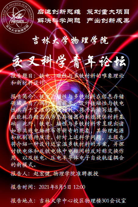 赵宏健,环球360手机版登录准聘教授,长期致力于铁电、磁性与多铁材料的理论研究,设计了一系列铁电、磁性与多铁新材料,并针对非共线磁矩/电矩结构、磁致铁电性和磁电耦合等现象建立了相关唯象理论,在Nature Materials,Nature Communications,Physical Review Letters和Physical Review B等期刊共发表论文40余篇。
