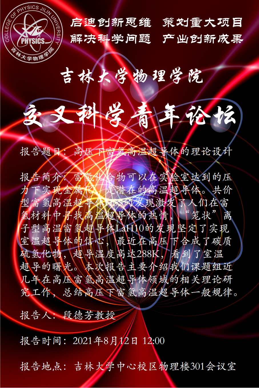 报告地点:吉林大学中心校区物理楼301