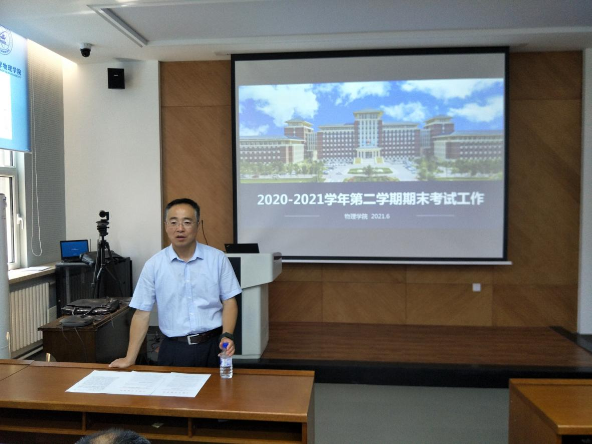 2021年6月24日上午,环球360手机版登录在物理楼333召开了2020-2021学年第二学期期末考试考务工作会,会议由教学副院长王海军主持,校教学督导专家崔志文教授、全体命题老师、部分监考老师及教学秘书参加了本次会议。