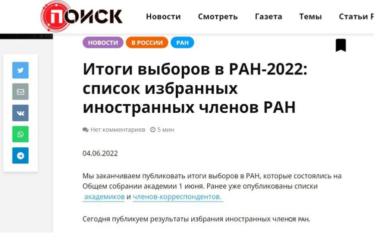 2022年6月2日,俄罗斯科学院(Russian Academy of Sciences,RAS)官方公布,新增外籍院士48位,以表彰他们在科学领域的杰出贡献。环球360手机版登录77级校友申泽骧教授(新加坡)位列其中。