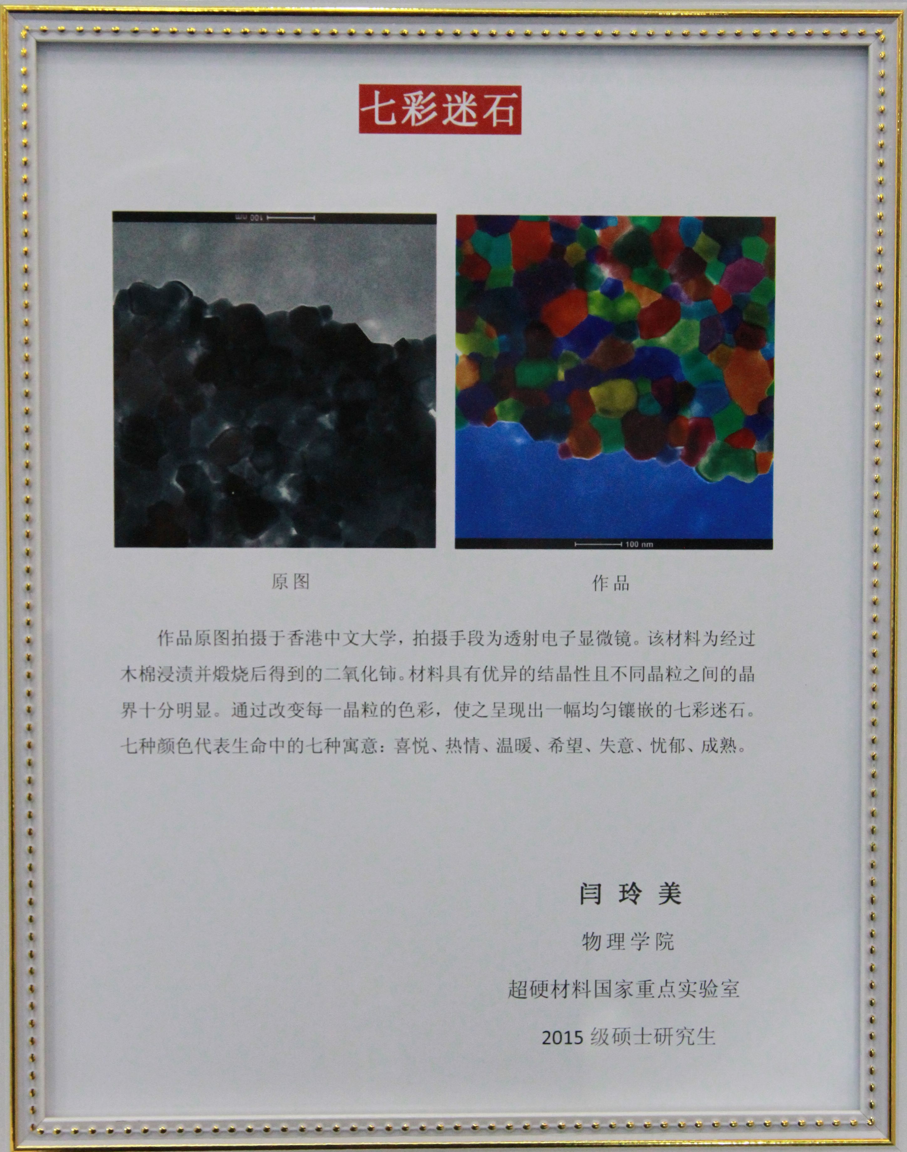 此次大赛,由超硬材料国家重点实验室教工党支部、博士研究生党支部、硕士研究生党支部联合承办,经过前期广泛动员、精心准备,共征集师生作品21件,作品内容包括:书法、摄影、绘画。在作品展示期间,每天均有师生到展区驻足观看,品读拍照。19日下午,由学院党委书记孟文卓等五位老师组成的评审组认真的听取了每名参赛选手的作品简介、主题,并与他们进行了亲切的交流。经过评审组充分讨论,评选出一等奖两个、二等奖四个、纪念奖若干。