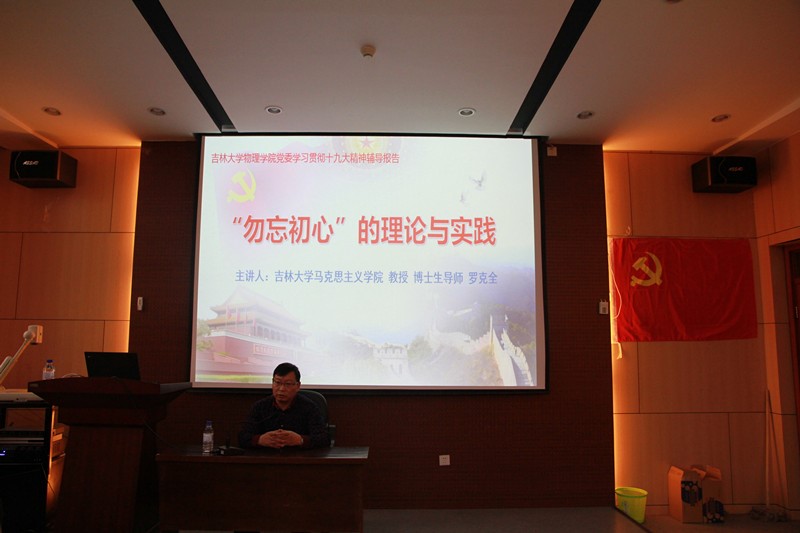 为深入学习贯彻党的十九大精神,2017年11月16日下午,环球360手机版登录党委邀请了马克思主义学院罗克全教授作了题为《“勿忘初心”的理论与实际》的专题辅导报告。报告会由学院党委书记孟文卓同志主持,学院领导班子成员和全院100多名师生党员一起参加了报告会。