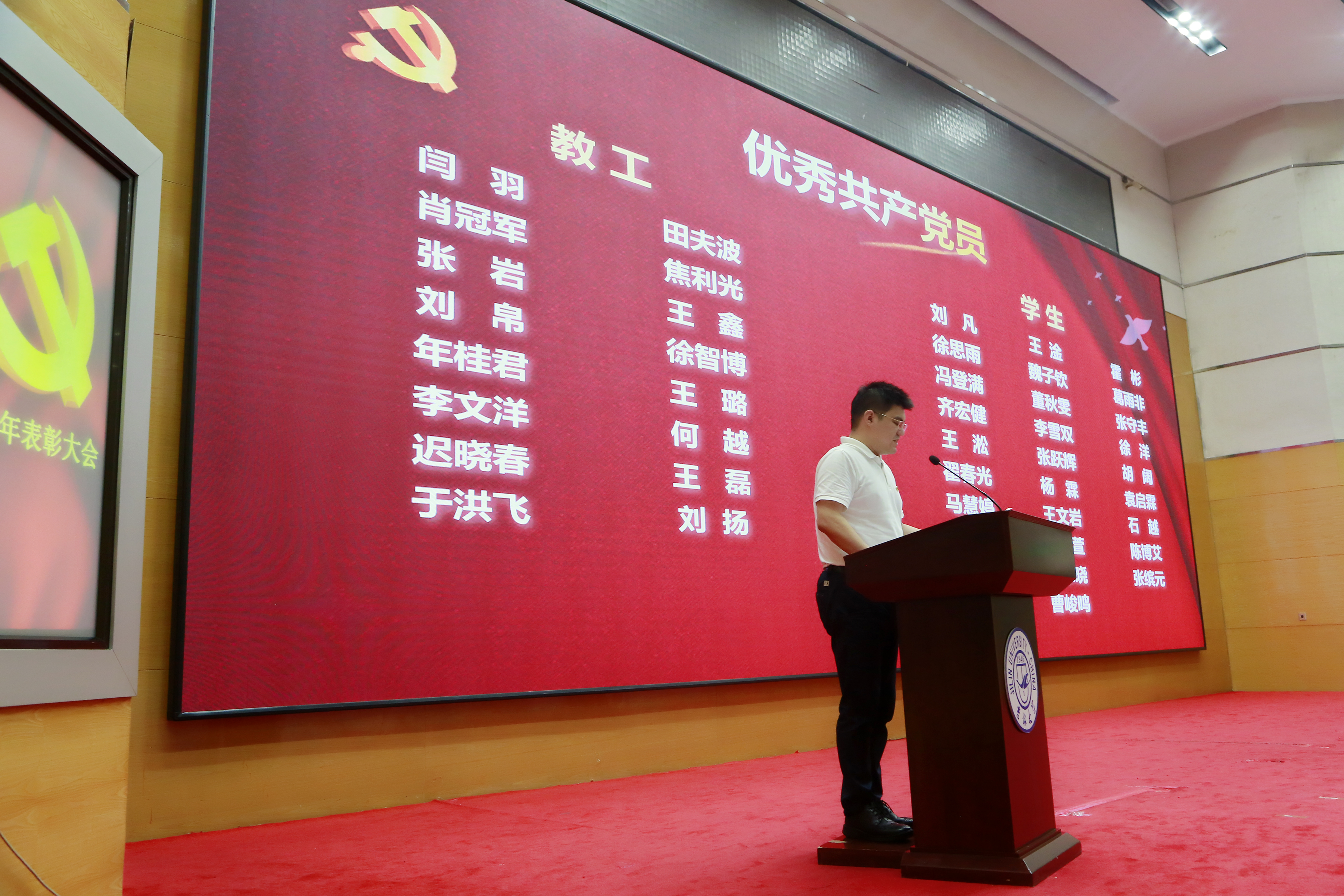 2021年6月25日,环球360手机版登录于东荣报告厅隆重举办庆祝建党100周年暨“两优一先”表彰大会。出席会议有学院全体党政班子成员、两委委员、师生党员、入党积极分子。表彰大会由学院党委副书记、纪委书记唐宗明主持。