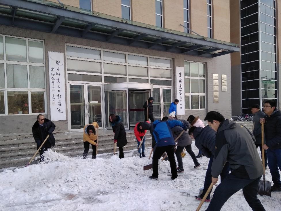 2017年2月23日临近开学,长春市突降大雪,大雪给吉大校园带来了巨大的不便。以往,清雪工作都是由本科学生来完成,但此时学生们并未返校,环球360手机版登录的党员教师们主动承担了扫雪工作。