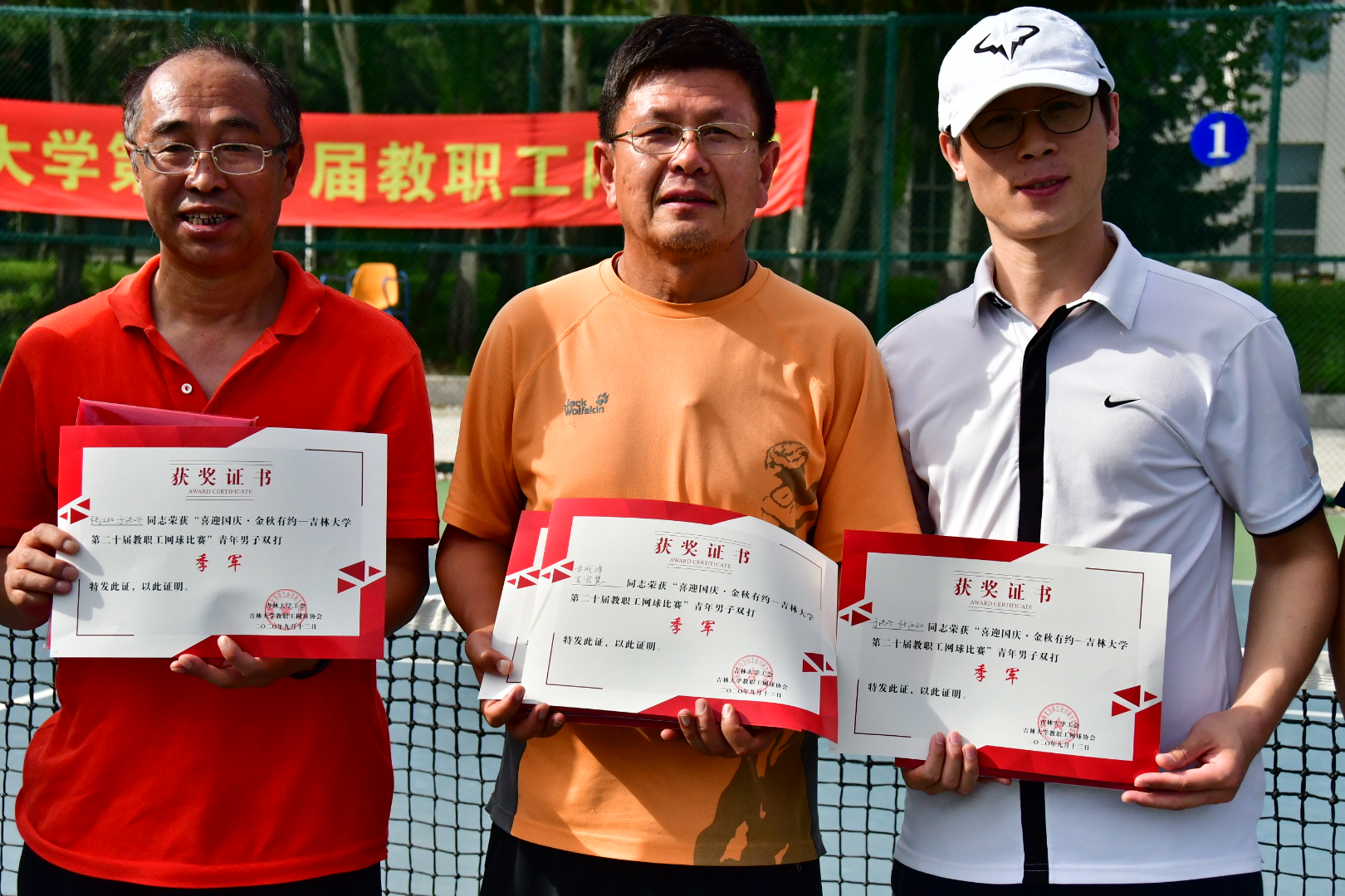 由校工会举办的“喜迎国庆,金秋有约”吉林大学第二十届教职工网球比赛顺利落下帷幕,我院网球队代表张汉壮、于洪飞两位老师在比赛中激烈角逐、火力全开、奋勇拼搏,最终斩获青年男子双打季军、中年男子双打季军的骄人成绩!