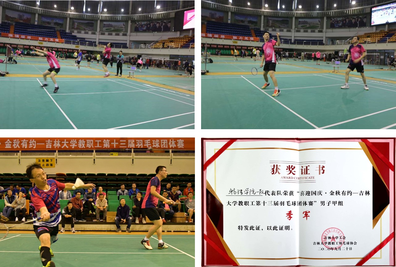 2020年9月19、20、26、27日,吉林大学第十三届教职工羽毛球团体赛在中心校区体育馆举行。本次比赛共有64支代表队参加角逐,我院派出两支男子代表队和一支女子代表队共20名运动员参赛。