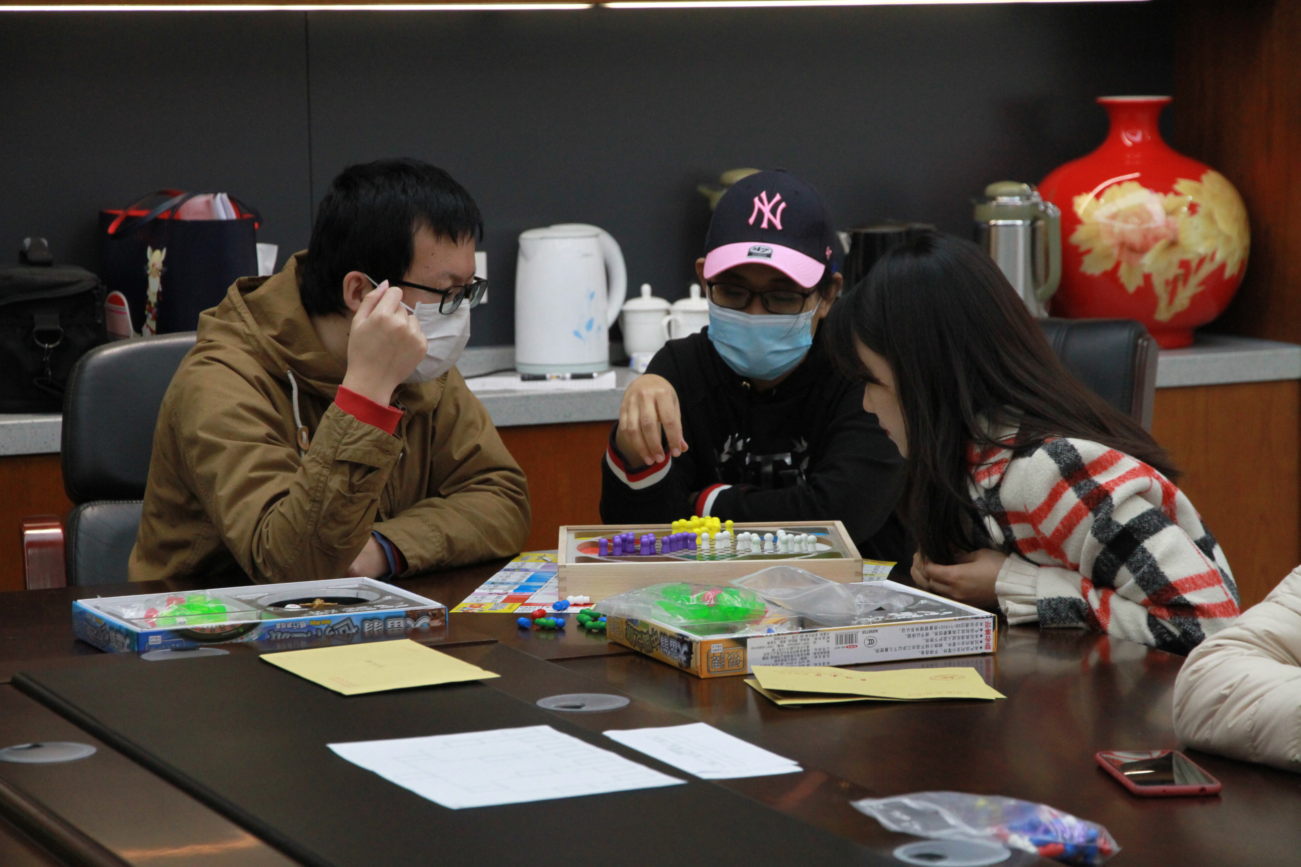 活动以“切磋棋艺,增加娱乐”为原则,共有中国象棋、五子棋、跳棋、大富翁棋四个活动区。楚河汉界内外,象棋为老师们提供了切磋技艺的平台,老师们落子深思熟虑、难分伯仲;黑白子之间,五子棋加深了大家对棋文化的了解,更有老师推广怀旧版五子棋新玩法;跳动的棋子在跳棋盘中会师,不断调动老师们机智灵敏的思维来寻找最优路线;大富翁棋盘上更是场景故事不断切换,机会牌惊喜变化,且看谁是最后的大富翁赢家。