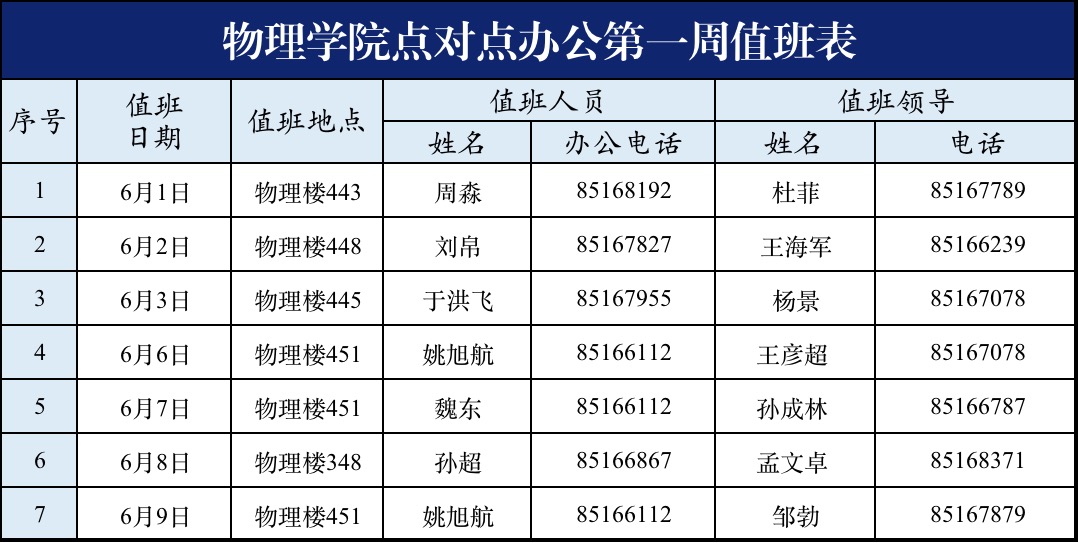 根据学校疫情防控精神和工作部署,环球360手机版登录为了进一步落实疫情防控和实验室安全双重职责,更好的服务广大师生,决定于6月1号起,严格实行领导值班制,请值班领导和值班行政人员,严格做好环球360手机版登录相关楼宇疫情防控管理和实验室安全管理,确保学院安全规范运行。