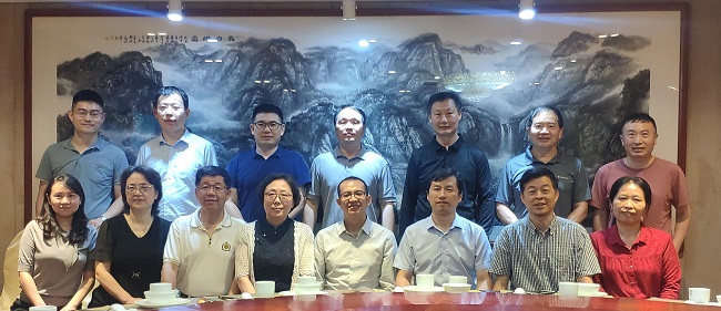 与中大院班子合影,左三为中大环球360手机版登录院长郭东辉(97级校友)、右二为中大环球360手机版登录副院长王猛(04级校友)