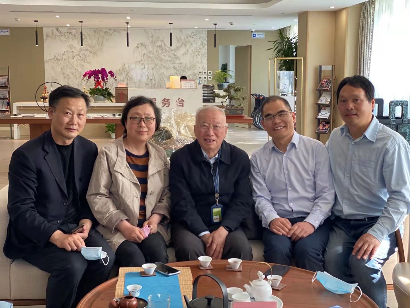 左三为1954届校友陈佳洱先生,左四为1994届校友、北京腾河智慧能源科技有限司董事长常洪山
