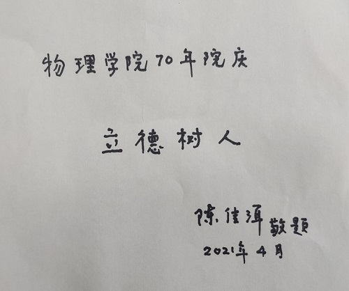 陈先生对孟文卓书记一行的到访表示欢迎和感谢,对母校取得的进步感到由衷的高兴,还饶有兴致地回忆起在学校的求学经历,回忆了余瑞璜、朱光亚、吴式枢、霍秉权、郑建宣、高墀恩等老师们对学生们的严格要求和无私帮助,由衷感谢母校的教导和培养,感谢老师们高尚品德、爱国情怀、严谨作风对自己的终身影响,并欣然为2022年学院70周年院庆题词。