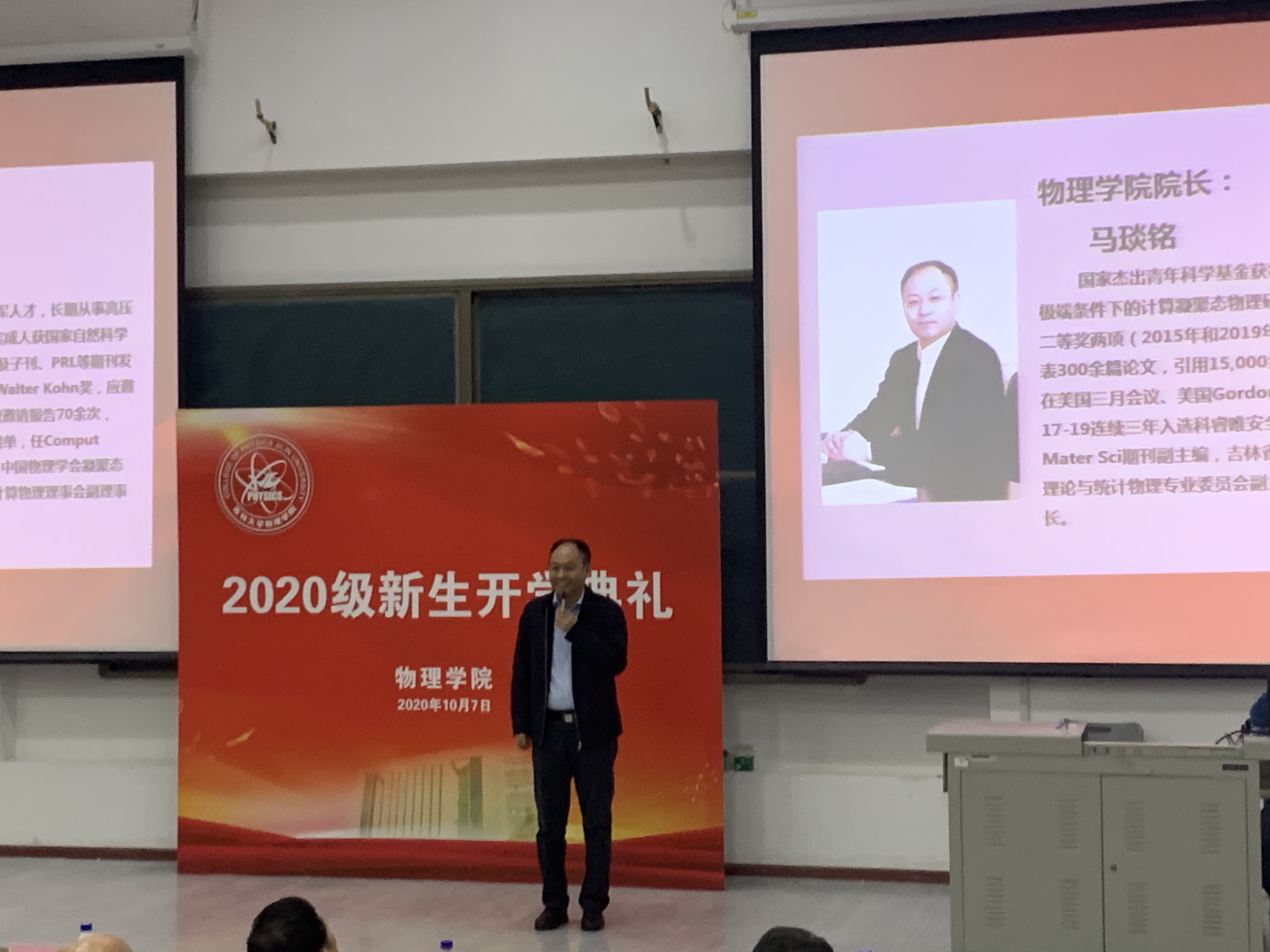 开学典礼在庄严的奏唱国歌声中拉开帷幕。首先,典礼通过播放环球360手机版登录和环球360手机版登录院长奖学金的视频宣传片,让同学们对学院有了初步的了解。随后,2020级新生代表、新生奖学金获得者、来着云南的刘林维同学代表全体新生发言。他表达了对吉林大学和大学生活的美好憧憬,号召全体新生坚持学习,乐于发现,勇敢追求真知和梦想,做个让自己骄傲的物理人。2017级唐敖庆班(物理方向)的宋翰林同学代表全体环球360手机版登录在校学生发言。他结合个人经历,课程学习,科研项目,交流访学,课余生活四个方面,向新生分享了自己对大学学习生活的理解,号召同学们珍惜时光,莫负韶华。