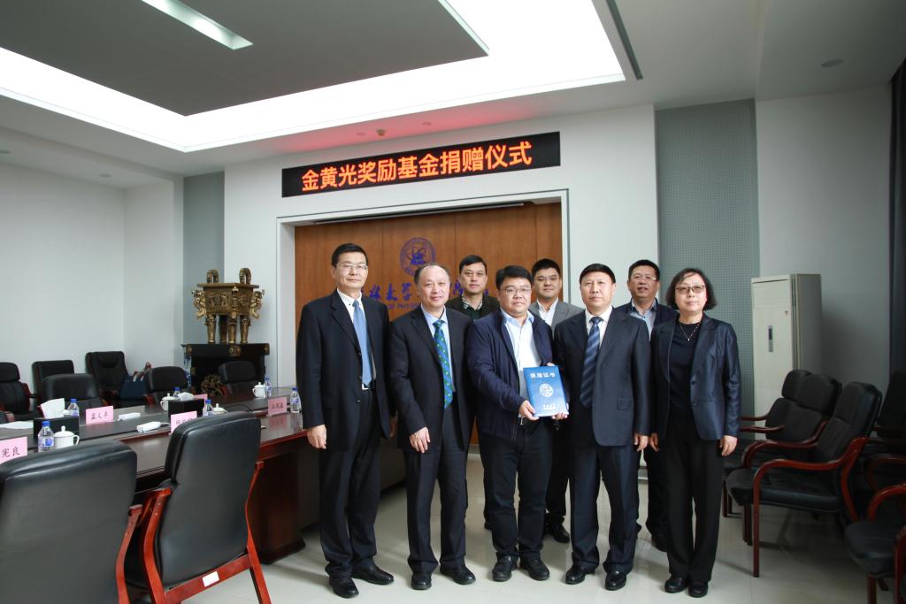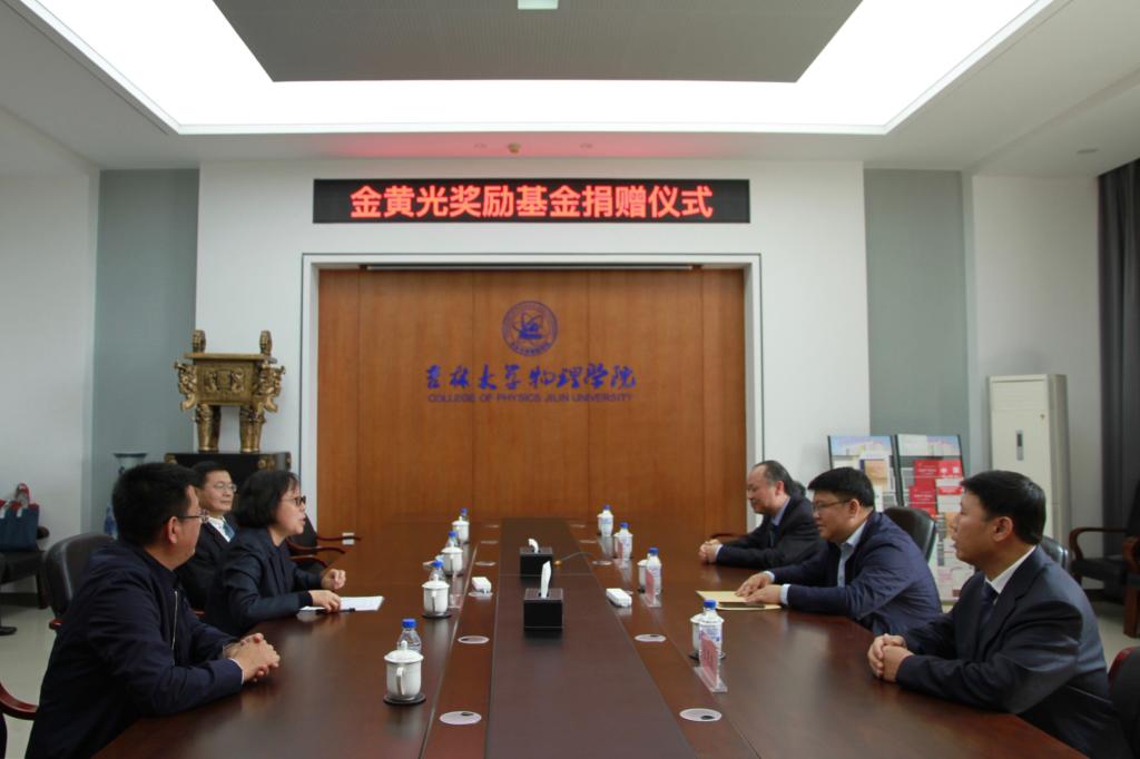 2020年9月21日上午,吉林大学“金黄光奖励基金”捐赠仪式在物理楼301会议室举行。环球360手机版登录杰出校友中国科学院院士江风益、南昌金黄光半导体照明有限公司董事长杨俊宁、吉林大学副校长郑伟涛、吉林大学校友联络和教育基金管理处处长迟宪良、环球360手机版登录党委书记孟文卓等出席捐赠仪式。仪式由环球360手机版登录党委书记孟文卓主持。