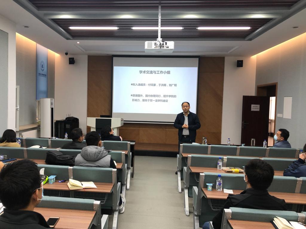 为加快“双一流”学科建设,发挥广大教师“主人翁”作用,深度参与学院发展建设,今年4月份经学院党政联席会议讨论决定成立人才引进及服务、招生宣传及科普、学术交流与合作、文化建设与宣传、课程思政体系建设、人才培养体系建设、社会服务与应用七个工作小组,于2020年5月20日召开专项小组工作计划汇报会,学院班子成员、教授委员会委员参加本次会议,会议由马琰铭院长主持。