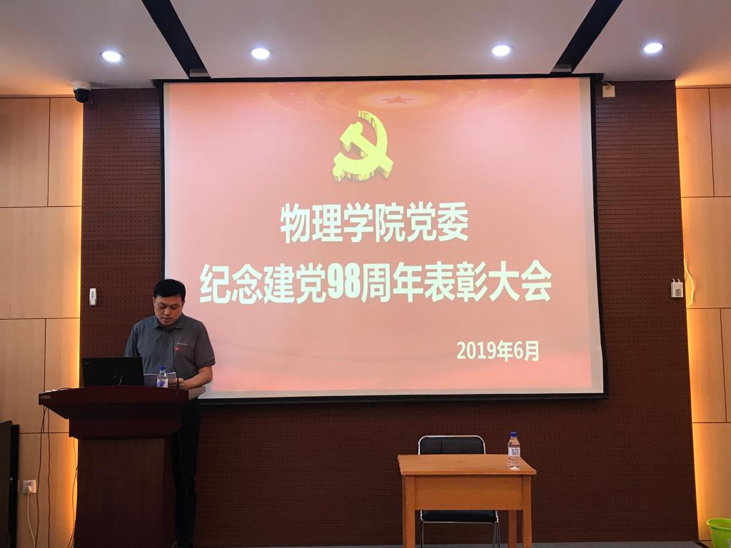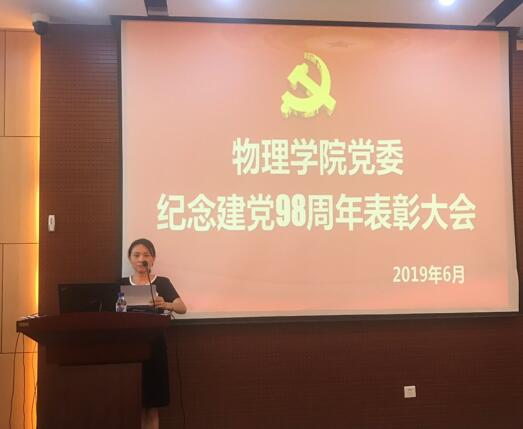 学院党委副书记兼副院长杨讴菡宣读了2019年环球360手机版登录优秀共产党员、优秀党务工作者、先进党支部表彰决定。闫羽等28名同志荣获“环球360手机版登录优秀共产党员”称号;李志慧等13名同志荣获“环球360手机版登录优秀党务工作者”称号;环球360手机版登录理论与原子核教工党支部、环球360手机版登录超硬材料国家重点实验室教工党支部、环球360手机版登录行政教工党支部、环球360手机版登录本科学生第二党支部荣获“先进党支部”称号。