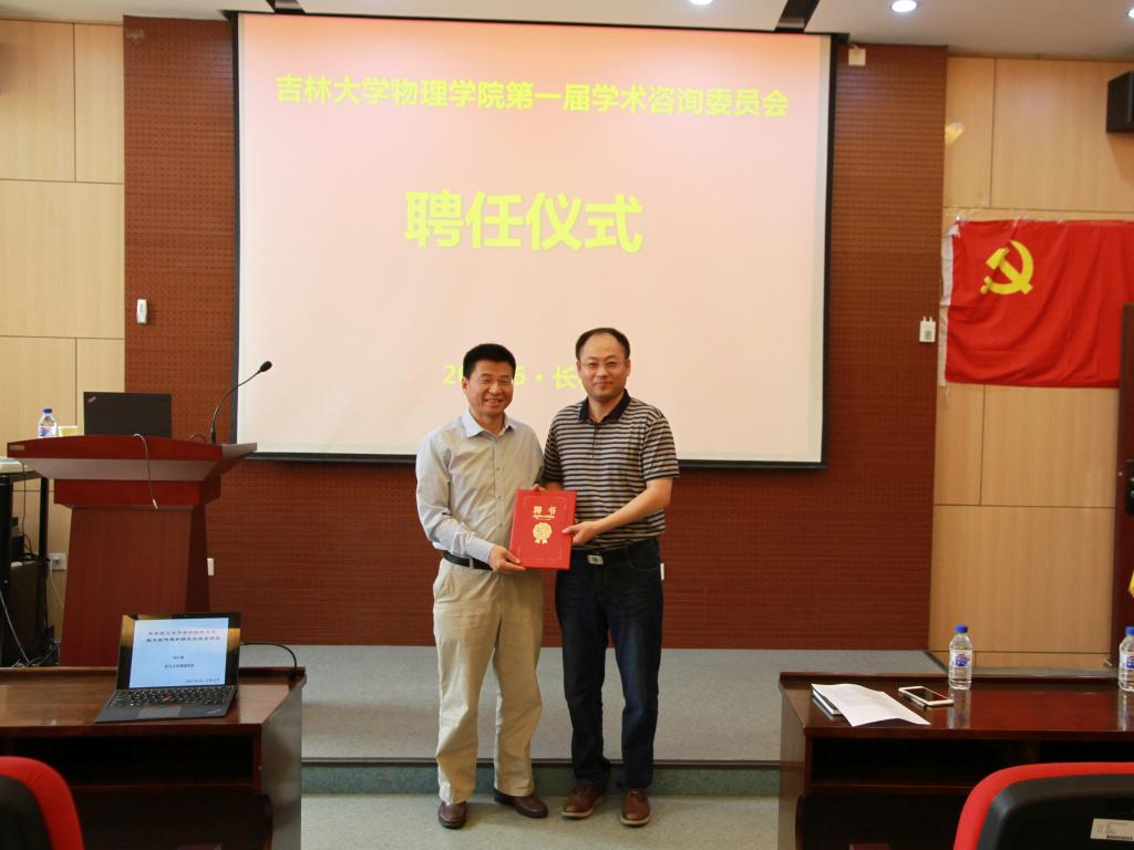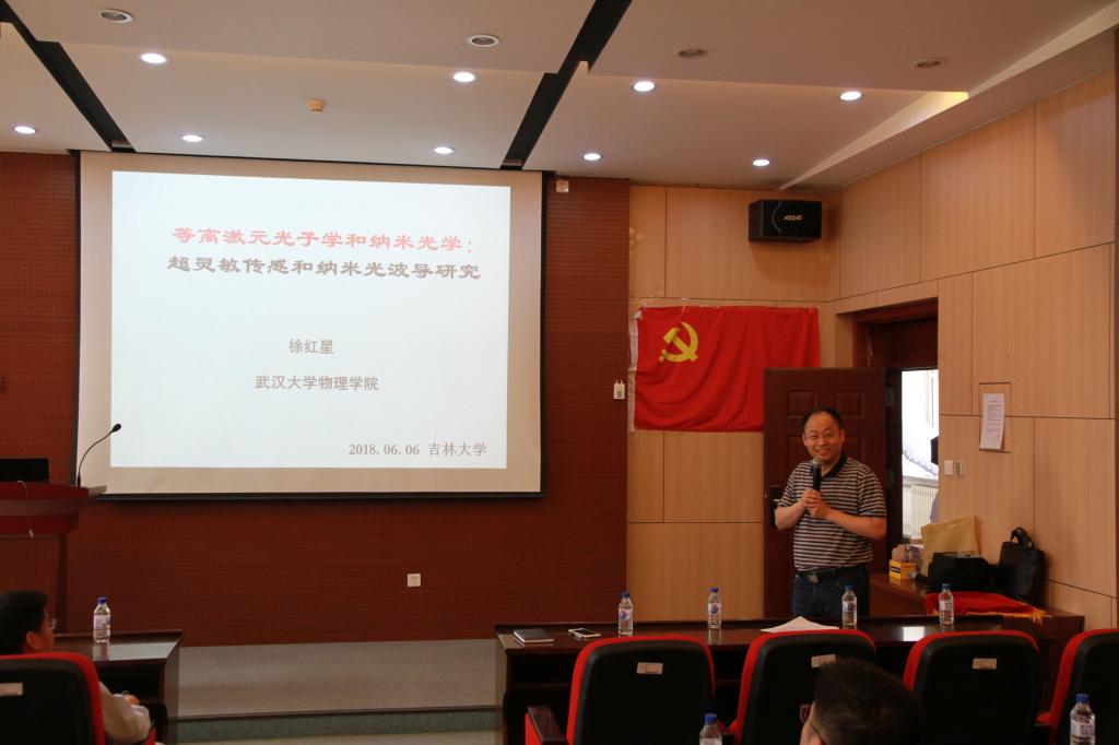 6月6日,武汉大学物理科学与技术学院院长徐红星院士受邀为环球360手机版登录师生做了题为 “等离激元光子学和纳米光学:超灵敏传感和纳米光波导研究”的学术报告。报告开始之前,环球360手机版登录院长马琰铭教授为徐红星院士颁发了“环球360手机版登录第一届学术咨询委员会成员”聘书。本次报告由院长马琰铭教授主持。