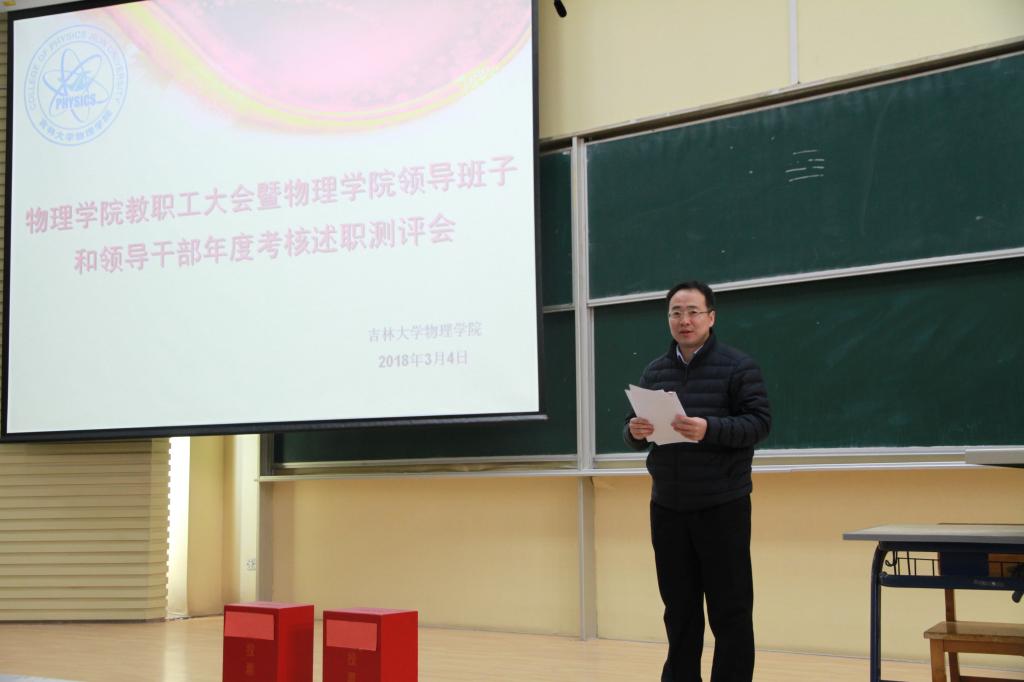 首先,马琰铭院长代表党政领导班子作工作总结,他围绕“学院坚持党的领导,以思想和觉悟提升为工作核心”、“学院坚持集体领导,民主集中的科学决策机制”、“学院以一流学科建设为主线,全面统筹推进各项工作”,从学科建设、师资队伍、人才培养、科学研究、国际交流等方面总结了学院2017年度工作。马院长指出在总结取得成绩的同时,全院教职工也要正确认识到学院在发展过程中面临的良好机遇和巨大挑战。马琰铭院长代表学院班子感谢全体教职工在过去的一年里所付出的辛勤努力,希望全院师生继续支持学院的整体工作,携手奋进,共同推动环球360手机版登录的工作再上新台阶。最后,他部署了2018年学院工作要点。