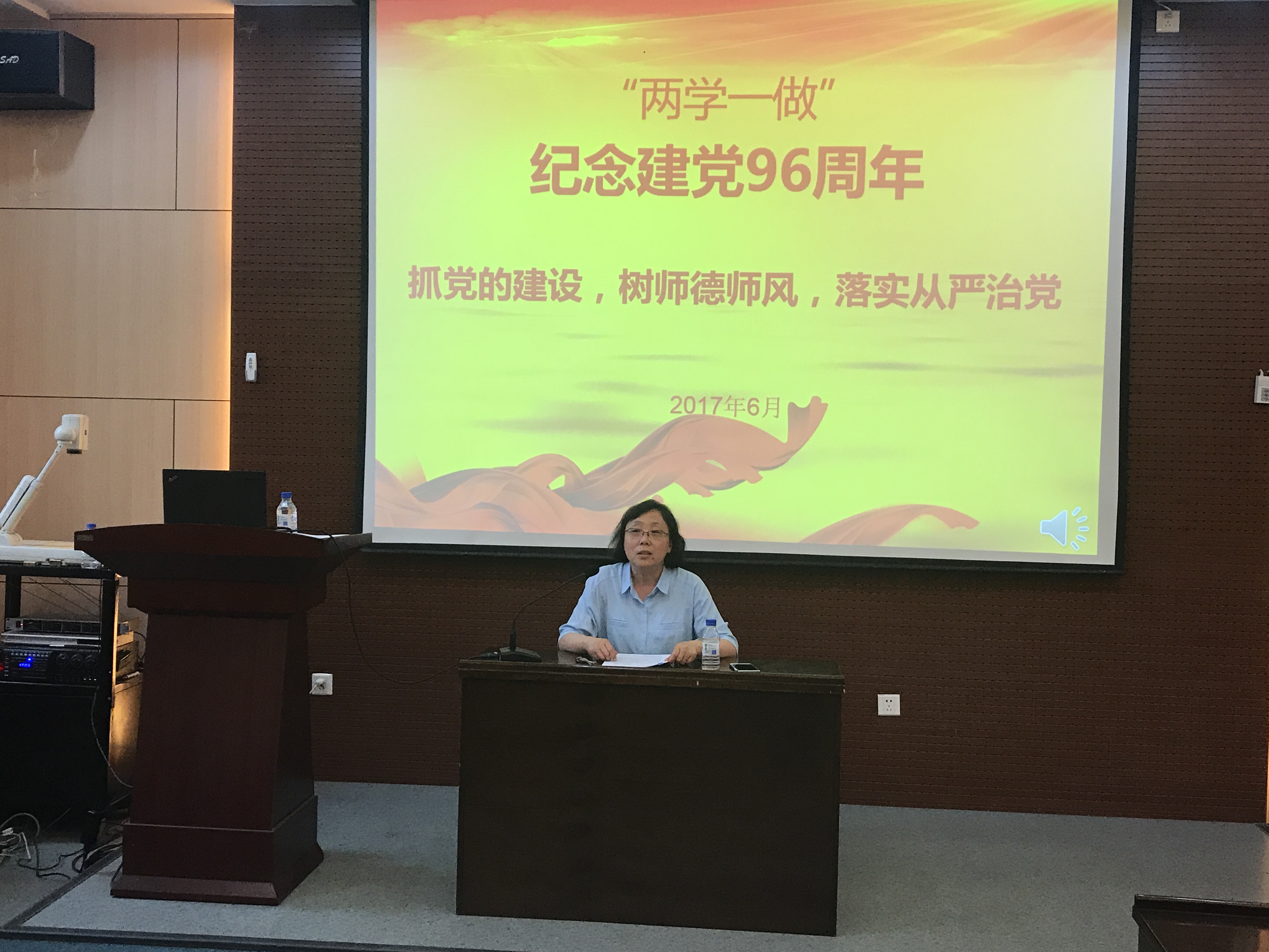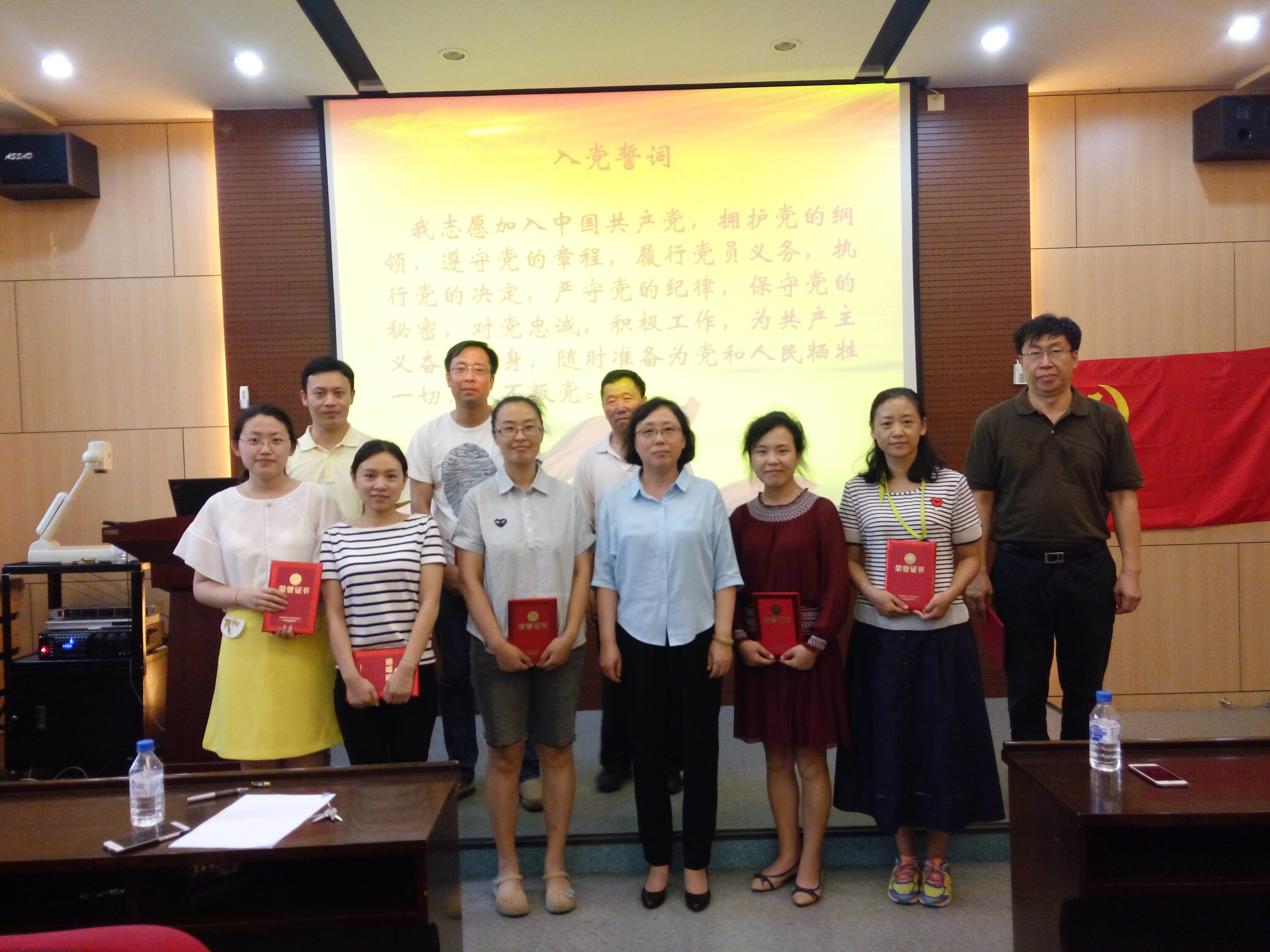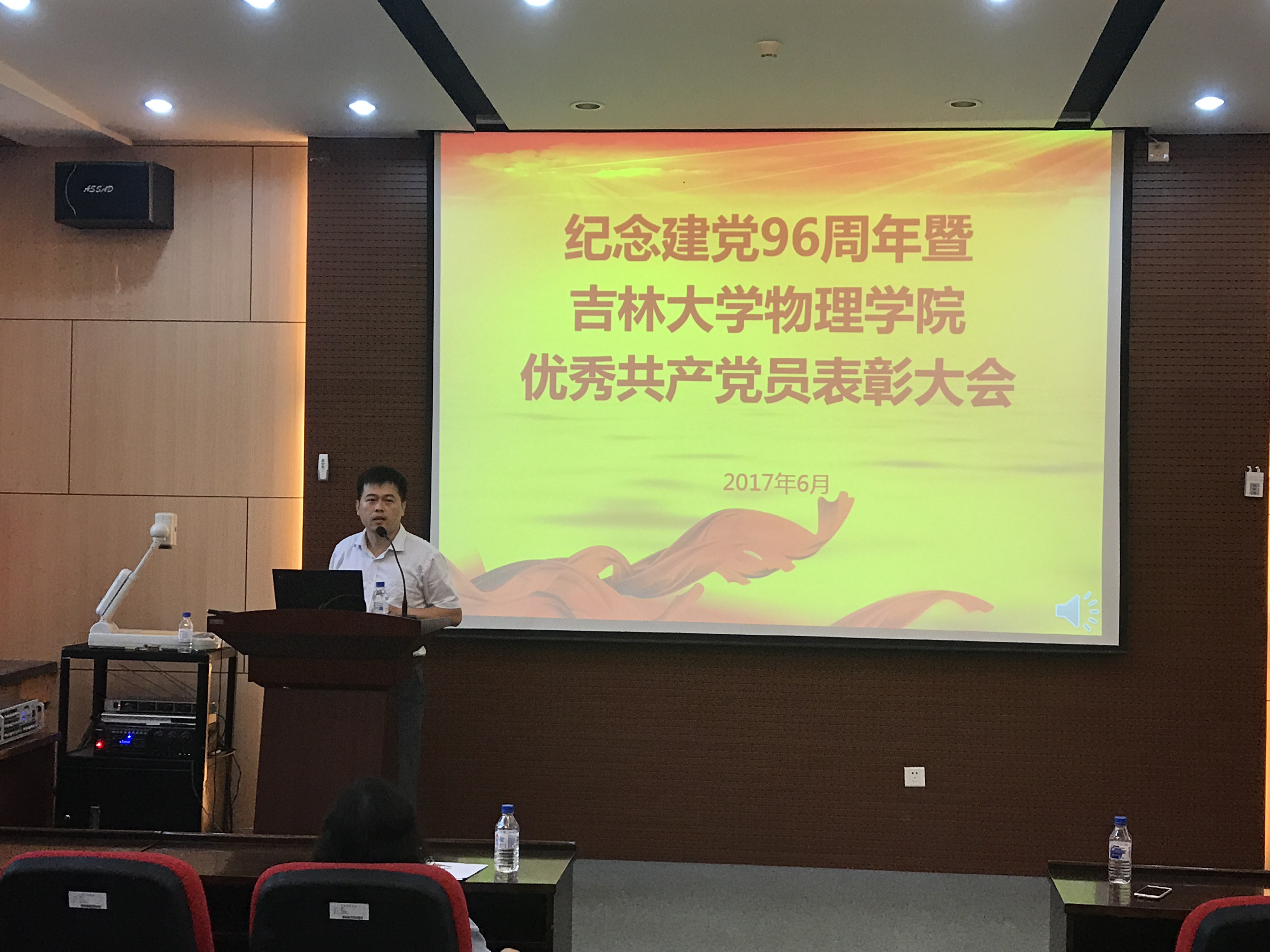 6月30日,我院于物理楼333室开展“庆祝建党九十六周年党员宣誓暨优秀党员表彰大会与专题党课”系列活动。全体教师党员、新发展学生党员与优秀学生党员代表参会,共100余人。会议由党委副书记孙长伦主持。