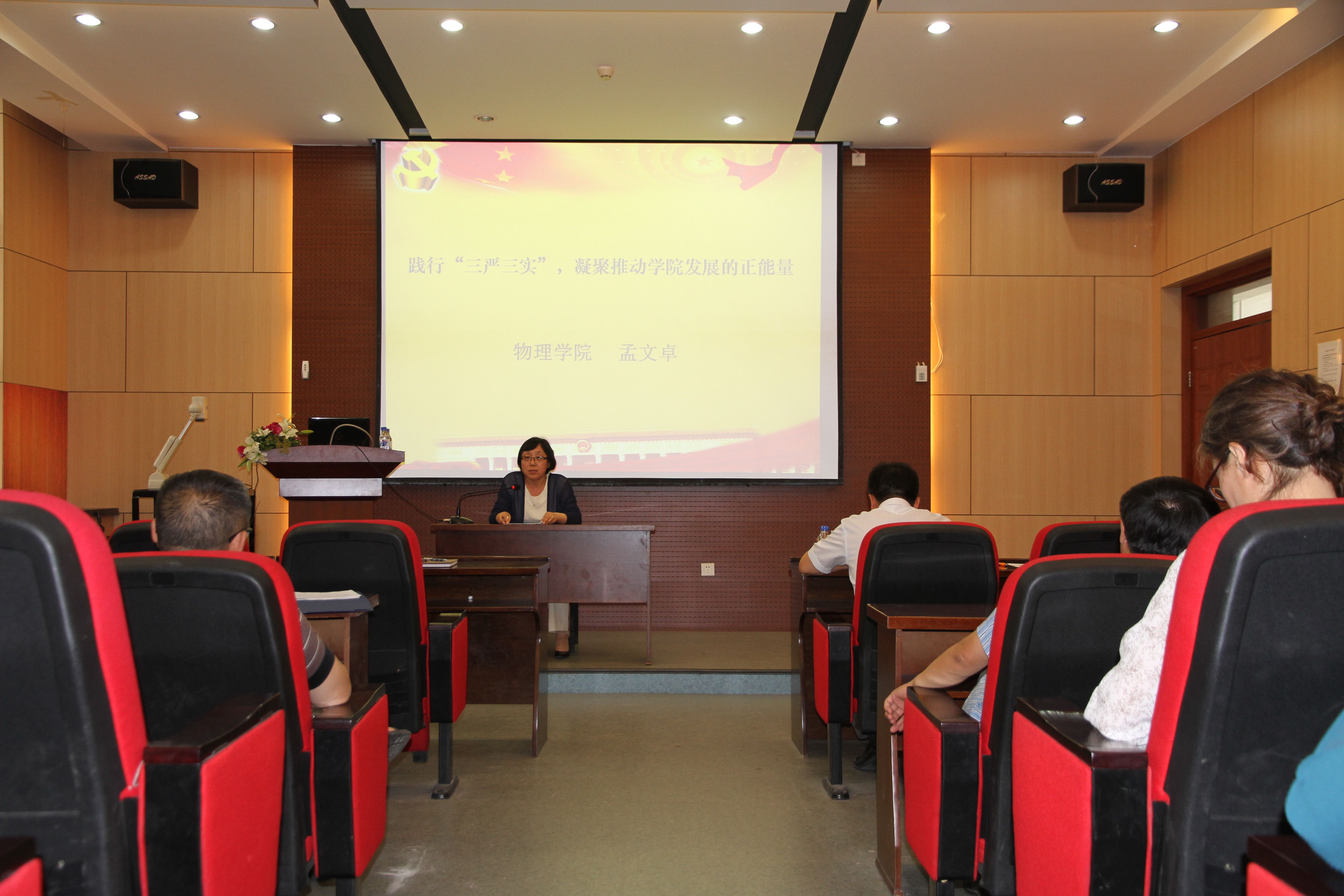 6月29日,环球360手机版登录在中心校区物理楼333会议室召开了“三严三实”专题党课暨动员部署会,学院领导班子成员、教工党员、学生党员代表参加,会议由党委副书记孙长轮主持。