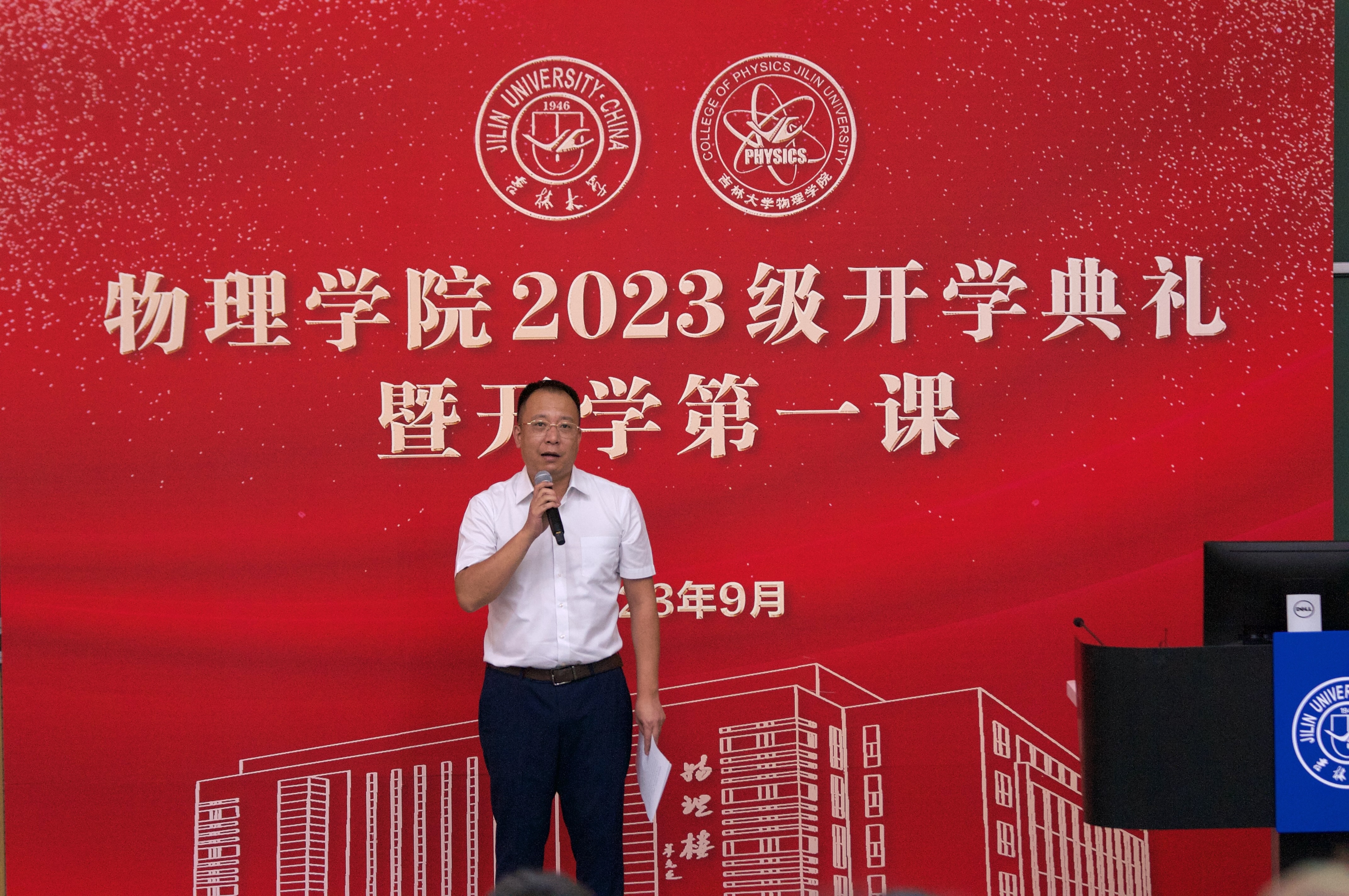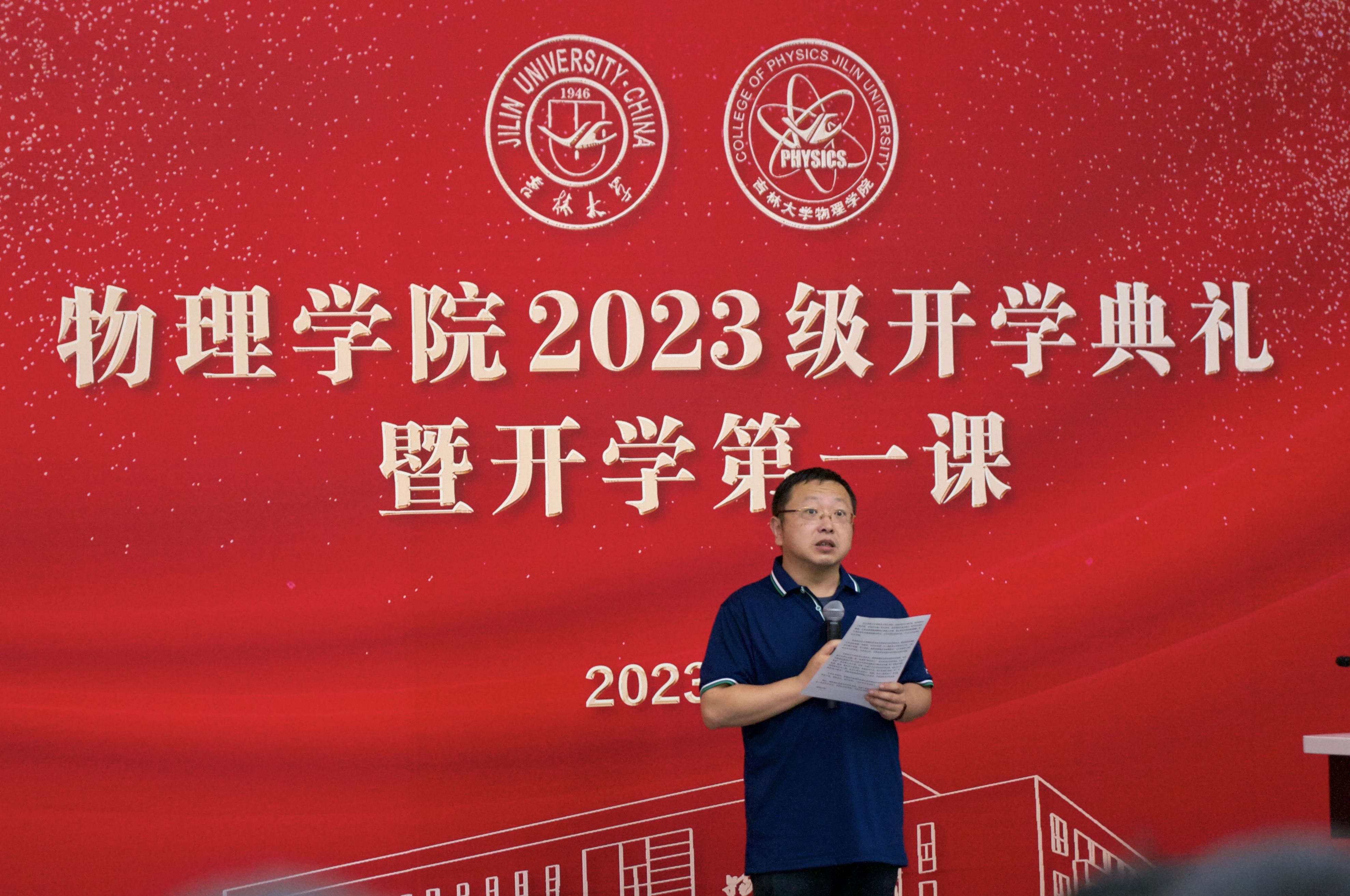 环球360手机版登录院长邹勃教授致辞。邹院长首先为大家介绍了吉林大学及环球360手机版登录的发展历史与辉煌成就,进一步增强了同学们的自豪感。邹院长说:“要敢于质疑,勇于探索。”这是大学生急需的品质与能力。邹院长提出了科学研究的“三重境界”:通过观察和发现现象来获取知识;大胆提出假设与猜想并给予验证;建立理论体系并进行创新,最后,邹院长表达了对同学们的殷切期盼并希望同学们能做好远期目标的规划和近期目标的计划,修身立德、锤炼意志,做对国家、人民和社会有用的人。