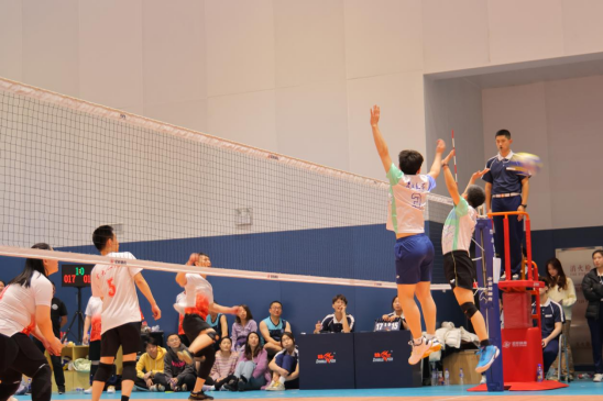 比赛中,环球360手机版登录代表队以精湛的球技和默契的配合,一路披荆斩棘、势如破竹,稳定发挥,连续拿下8场胜利进入决赛。决赛中,面对上届冠军吉大一院代表队,队员们斗志昂扬,“我来!”“可以!”“好球!”,还未走入排球场,便能听到队员们奔跑的脚步声和响亮的呐喊声。周洪雷老师一边做好二传这一关键角色,一边指导着队员们的技术动作和进攻思路,队员们反反复复为了接球跪地、扑倒、翻滚,奋勇拼搏。救球、传球、扣杀、拦网,一个个精彩的瞬间,展现着环球360手机版登录代表队的实力与默契。