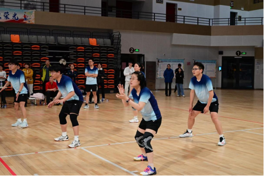对于本次比赛,环球360手机版登录高度重视,精心筹备。组建了由教师代表、研究生及辅导员共12人组成的参赛队伍。学院党委书记、主管研究生工作副书记亲自动员,鼓励师生以赛促练、以赛强体,将科研中的严谨态度融入体育竞技。队员们利用课余时间积极训练,从发球精准度、接传配合到战术推演,每一个环节都反复打磨。周洪雷、马玉刚、宋乾等教师带头参训,与辅导员和学生队员共同锻炼,在训练中践行“师生同频、教学相长”的理念,为赛事打好技术与默契的双重基础,也为学生队员们日常缓解科研压力、强健体魄提供平台。